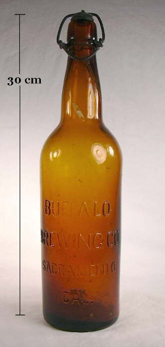 Utilitarian bottles include the majority of the bottles in the following bottle categories or types: soda, mineral water, beer, milk, proprietary medicine, druggist (excluding shop furniture), chemical, foods & sauces, household (including ink, shoe polish, cleaners, personal hygiene related items), common wine containers (excluding decanters), champagne, and most non-decanter spirits/liquor bottles. Utilitarian items include canning/fruit jars and figured flasks since they were intended to be reused by the purchaser and have been observed to follow well the dating guidelines, though there are some manufacturing timeframe differences with canning jars. (Click canning jar to view the typology page section devoted to that category.) The heavy glass beer bottle pictured to the above left is a classic example of a utilitarian bottle from the late 19th century which was typically reused but follows the dating guidelines on this and the related dating pages.