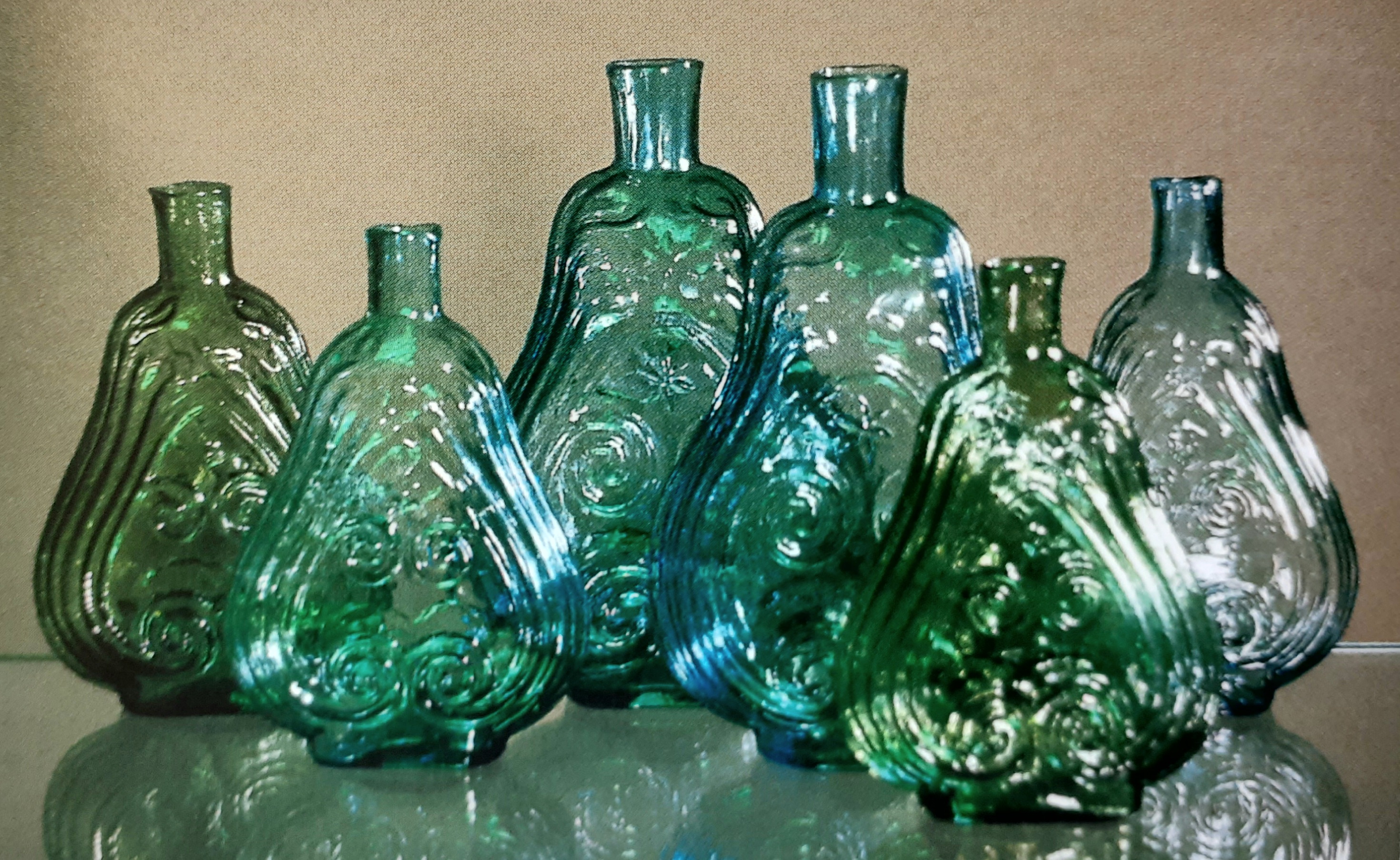 -Decorative flasks -Masonic flasks -Historical flasks -Calabash bottles -Agriculture, Commerce, and Transportation theme flasks -Other Figured flasks
