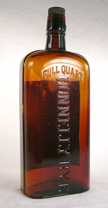Alcohol was of course an important ingredient in many other products also, ranging from wine, champagne, beer, and porter to most patent and proprietary medicines, bitters, and tonics to even preserved fruits. This section of the "Bottle Typing/Diagnostic Shapes" page just covers liquor bottles where the contained product was high in alcohol (20%+) and the intended use was not primarily medicinal - or at least the acknowledged medicinal utility was of secondary importance. For example, even though Hostetter's Stomach Bitters contained as much as 43% alcohol (86 proof!) during the early 1900s, it's primary intent was medicinal though undoubtedly many people who used this very popular product did not have self-medication in mind (American Medical Assoc. 1921). In addition, various straight liquors were thought to be therapeutic for various ills - gin for the kidneys, rum as a cure for bronchitis, and Rock and Rye for the symptoms of the common cold (Powers 1998). Whiskey was often labeled as - and sometimes even embossed - "For Medicinal Purposes Only" as early as the mid-19th century - long before National Prohibition took effect in January of 1920 (Wilson & Wilson 1968). To be fair, ethyl alcohol was (and is) one of the better preservatives for products intended for internal consumption or external use. These examples help point out the vague line that existed between liquor/spirits and medicinal products during the 19th and early 20th centuries.