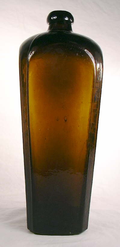 Like the cylinder liquor bottles above, there is a large array of liquor bottles that are square or rectangular in cross-section. These bottles varied in size and design substantially, but all share the fact that they are square or rectangular when looking straight on at the base. The following bottles represent some of the more common shapes of square/rectangular liquor bottles progressing from the generally oldest styles to newest. As with all the bottle types described on this site, there is almost endless variations on any shape theme so a user should not get too caught up in subtle details, though admittedly some subtle details can be very diagnostic; these are noted where possible.