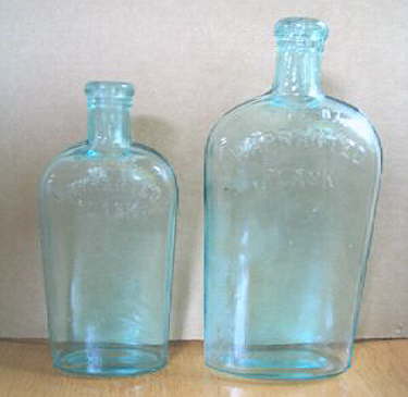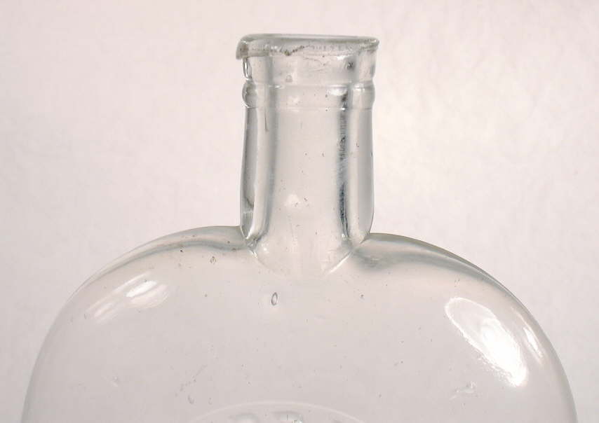 Flask Styles (not considered "figured") Flasks of widely varying shapes and sizes were a very common container for spirits of all kinds, originating in the need for a traveling bottle. A flask is a bottle originally designed to be portable and easy to carry, which is typically oval to a rounded rectangle in cross-section, and laterally compressed on two sides. Flasks are most often associated with varying types of spirits, though they were used for some other liquid products like medicines and bitters (Jones & Sullivan 1989, Ring & Ham 1998, empirical observations). Though the "flask shape" can be found in a multitude of sizes; on this website flasks are considered to have a capacity of about 16 oz. or less which is a more or less the upper limit of a pocket or "portable" size. The following bottles represent some of the more common shapes of spirits/liquor flasks progressing in general from oldest to newest. As with all the bottle types described on this site; there is almost endless variations; crossovers; and hybrids on any shape theme with flasks. Given this a user should again not get too caught up in specific details.